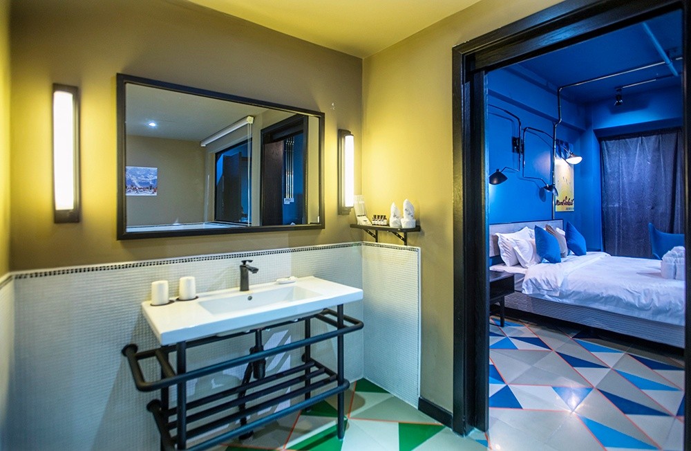 酒店有豪華溫泉大床房、豪華溫泉標準間、棋牌大床房、特色四人房等房型,特色是每間客房的平均面積有42平方米,有景觀飄窗、大浴缸、24小時熱水、干濕分離的衛(wèi)生間、WIFI全域覆蓋……硬件設(shè)施配套人性化。酒店的部分客房做成了童話藍的夢幻風,夏天的時候特別受親子家庭的喜歡。