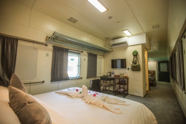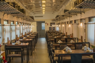 東方紅火車(chē)主題酒店由3列27節(jié)綠皮火車(chē)車(chē)廂組成,來(lái)自長(zhǎng)春、沈陽(yáng)等北方城市的綠皮火車(chē)經(jīng)過(guò)著名設(shè)計(jì)師的改造已經(jīng)成了國(guó)內(nèi)為數(shù)不多的火車(chē)主題酒店,一共73間火車(chē)客房和1個(gè)火車(chē)餐廳。酒店以橫鋼50年代金千鐵路舊址作為切入點(diǎn),利用火車(chē)枕木鋪設(shè)人行游步道,結(jié)合溫泉,形成了真正的VIP溫泉客房。走進(jìn)綠皮火車(chē),你會(huì)發(fā)現(xiàn)原先的車(chē)廂已經(jīng)被很好地設(shè)計(jì)成了宜居的客房,書(shū)桌、衛(wèi)生間、電視、暖氣一應(yīng)俱全,還能在墻上看到年代感的背包/水壺/帽子的裝飾。