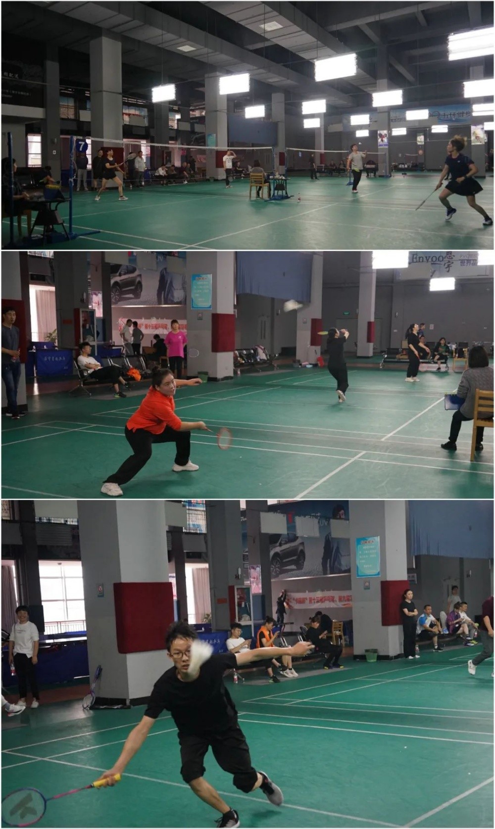 比賽場上,選手們一個個生龍活虎,雪白的乒乓球和羽毛球在球拍間來回穿梭,劃出一道道靈動而精美的曲線。選手們各施絕技,每球必爭、每分必?fù)?,打得酣暢淋漓,觀眾大呼看球過癮。比賽懸念叢生,精彩紛呈,賽場上歡聲笑語不斷,陣陣掌聲和叫好聲將比賽推向了一個又一個高潮。