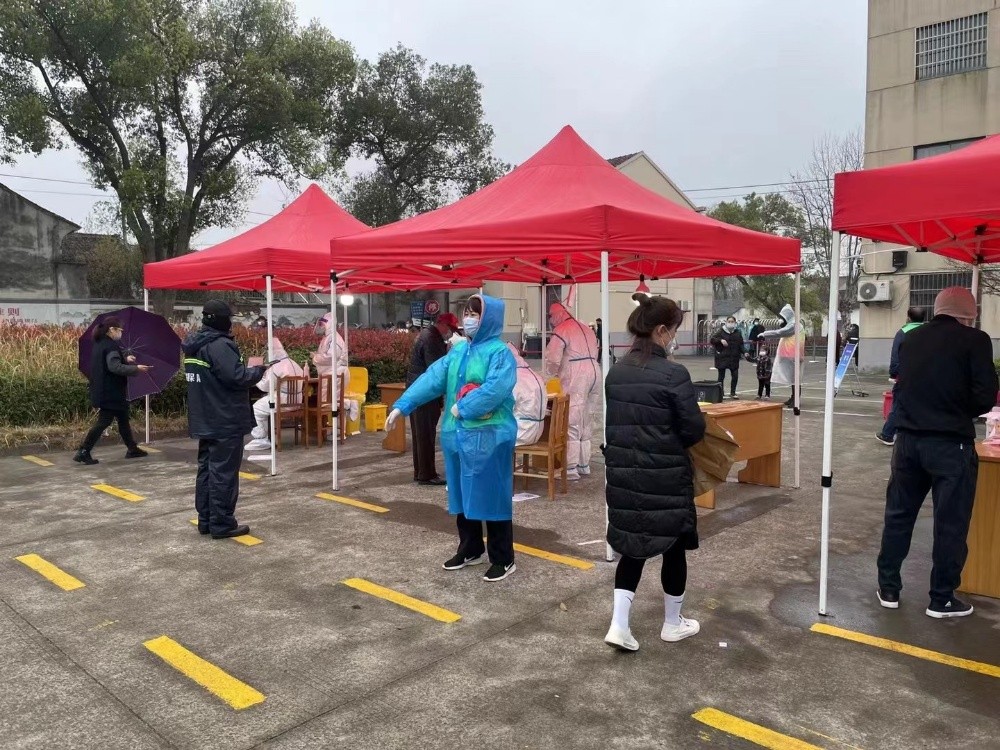 當(dāng)天,是全鎮(zhèn)做核酸檢測(cè)的日子,黨員們帶著N95口罩,口袋里還放一小瓶消毒酒精,來到了鎮(zhèn)政府的核酸采集點(diǎn),每位志愿者、黨員干部紛紛忙碌著,進(jìn)大門的每一個(gè)人,志愿者都要檢查健康碼是否是綠色的,然后再測(cè)量體溫。一共有兩個(gè)通道,其中一個(gè)是愛心通道,老人和小孩都可以從愛心通道通過。排隊(duì)的人都留了一米遠(yuǎn)的間隔,那是安全距離,防止病毒攜帶者交叉感染。公司黨員不顧淋著雨,口中重復(fù)著:這邊排隊(duì),一米安全距離,打開健康碼,戴好口罩……