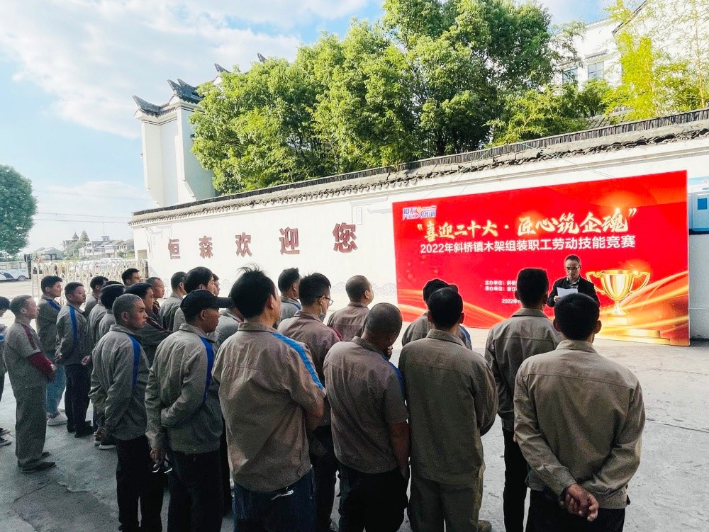 為提升職工勞動技能水平,形成創(chuàng)先爭優(yōu)、比學趕超的競爭氛圍,一場以“喜迎二十大 匠心筑企魂”為主題的2022年斜橋鎮(zhèn)木架組裝勞動技能競賽在恒森公司組裝車間拉開戰(zhàn)幕,來自組裝一車間、二車間和打樣車間的26名技能型員工報名參賽。