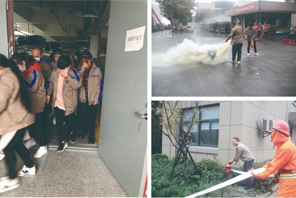 任何人員發(fā)現(xiàn)火災(zāi)后應(yīng)立刻呼叫附近員工參與滅火救援,在一分鐘內(nèi)組成第一滅火力量。通過演練干粉滅火器、推車滅火器滅火,水帶連接消火栓出水演練,使員工掌握發(fā)生火災(zāi)后正確的滅火力量調(diào)配和撲救步驟。
