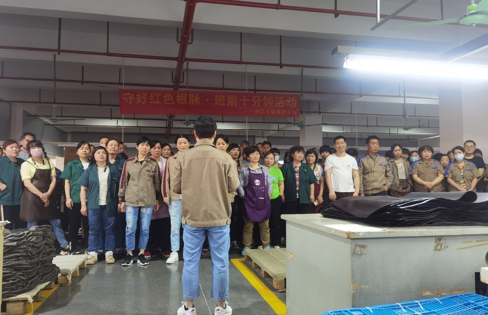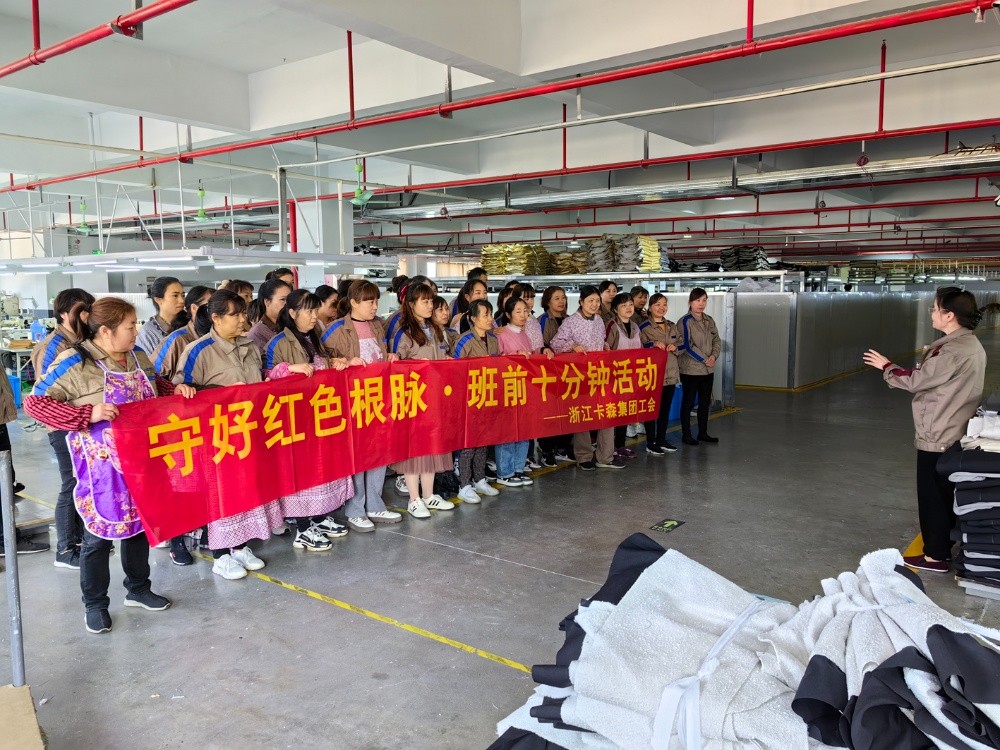 近段時(shí)間以來,卡森集團(tuán)工會(huì)根據(jù)市、鎮(zhèn)總工會(huì)“守好紅色根脈·班前十分鐘活動(dòng)”的工作部署,在集團(tuán)黨委的組織帶領(lǐng)下,號(hào)召各子公司全面興起“班前十分鐘”活動(dòng),為把黨的思想精神、奮斗目標(biāo)和方針政策傳達(dá)貫徹到基層員工心中,鞏固夯實(shí)共同富裕的思想基礎(chǔ),奮力打造員工精神共富的品質(zhì)企業(yè)。