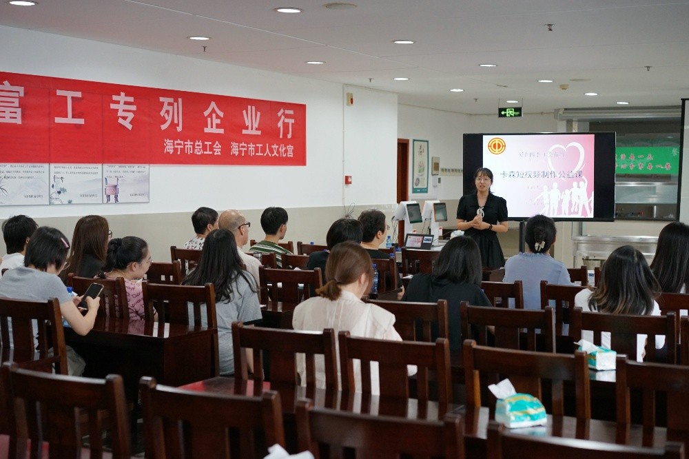 短視頻拍攝制作已成為當(dāng)前主流趨勢,日常工作和生活都離不開它。為了增強(qiáng)員工綜合技能,激發(fā)和培養(yǎng)員工興趣喜好,豐富員工文化生活,更好地適應(yīng)新時(shí)期社會(huì)發(fā)展需求,7月27日下午,我集團(tuán)舉辦手機(jī)短視頻制作培訓(xùn)班,邀請(qǐng)海寧市工人文化宮沈愷老師現(xiàn)場授課,20多位視頻制作愛好者參加。