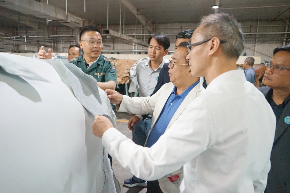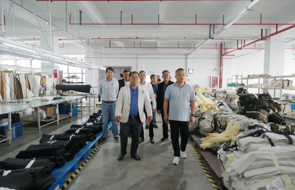 隨后,訪問團(tuán)一行到斜橋工廠區(qū)進(jìn)行參觀訪問。在漢林沙發(fā)有限公司,總經(jīng)理朱建林帶大家參觀了沙發(fā)制造車間和成品車間;在制革事業(yè)部,副總經(jīng)理謝柏?zé)槑ьI(lǐng)大家參觀了皮革制造車間。