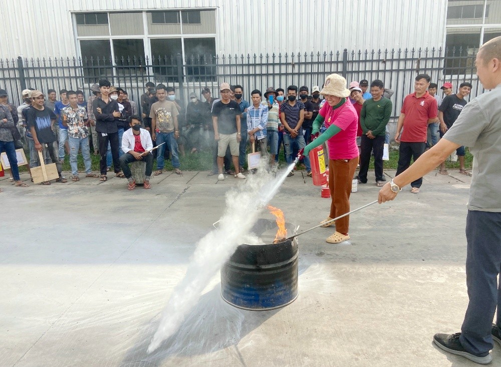 恒森公司柬埔寨廠區(qū)現(xiàn)有員工450人,這次培訓(xùn)分上、下午兩場進(jìn)行,著重宣傳和強(qiáng)調(diào)消防安全和道路交通安全的重要性和必要性,并就消防器材使用進(jìn)行了現(xiàn)場講解與演練。