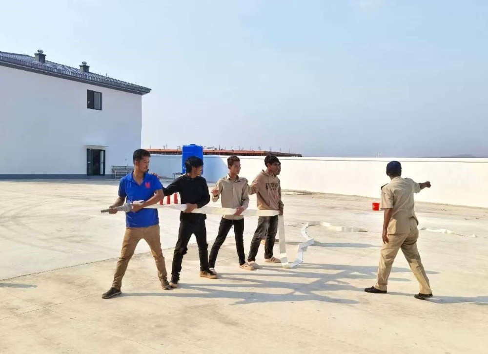 公司員工全部集結(jié)后,柬埔寨國公省消防局對(duì)消防安全知識(shí)——疏散逃生中注意的要點(diǎn)、如何報(bào)火警、火災(zāi)的預(yù)防、火場(chǎng)自救及逃生方法等進(jìn)行了分析講解,并教大家如何規(guī)避安全事故及正確使用滅火器和出水帶。各部門派代表進(jìn)行了干粉滅火器和水帶使用演練,使員工進(jìn)一步正確掌握滅火要領(lǐng),快速撲滅著火物。