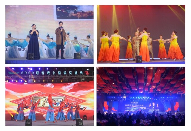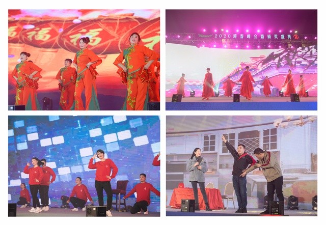 年會(huì)分四部分:第一部分是集團(tuán)總裁朱張金致辭并作年度簡(jiǎn)要總結(jié),對(duì)全體員工克難爭(zhēng)先、負(fù)重前行所付出的辛勤勞作表示感謝,對(duì)集團(tuán)2020年目標(biāo)作了戰(zhàn)略展望和路徑規(guī)劃;第二部分是頒獎(jiǎng)盛典,工作人員宣讀了年度表彰文件后,集團(tuán)管理層領(lǐng)導(dǎo)為最美責(zé)任員工等6批60位先進(jìn)個(gè)人頒獎(jiǎng)表彰,為6批17個(gè)最佳集體頒獎(jiǎng)授牌,同時(shí)播放由評(píng)委會(huì)給最美個(gè)人和最佳集體的頒獎(jiǎng)詞,最美員工代表張琴作獲獎(jiǎng)感言;第三部分由卡森國(guó)際總經(jīng)理朱瑞俊致祝酒辭并宣布晚會(huì)正式開始;第四部分是文藝匯演,由部分子公司精心準(zhǔn)備的節(jié)目精彩亮相,“歡樂中國(guó)年”、“不忘初心”、“我們都在努力奔跑,我們都是追夢(mèng)人”、“我的祖國(guó)”、“雪落下的聲音”、“擁軍秧歌”等一支支舞蹈粉墨登場(chǎng),小品“其實(shí)我們都是好同志”把工作的情景搬上舞臺(tái),強(qiáng)調(diào)工作中的責(zé)任與堅(jiān)守。外加央視春晚明星葉晨大師精彩絕倫的魔幻表演,以及緊張刺激的六輪抽獎(jiǎng)環(huán)節(jié),為晚會(huì)增色添彩,高潮迭起。