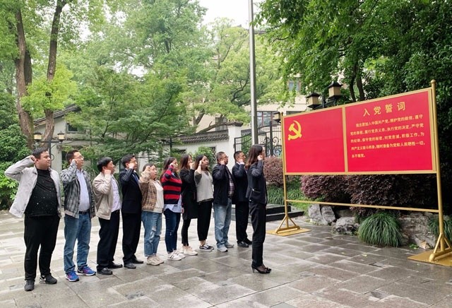下午3時,黨員們在置業(yè)公司會議室刷卡簽到后,隨即來到了北山路上的中國共產(chǎn)黨杭州歷史館進(jìn)行考察學(xué)習(xí)。雖然下午的天氣陰雨綿綿,但參觀的人群仍然絡(luò)繹不絕,把面積不大的場館擠得滿滿當(dāng)當(dāng)。在講解員的介紹下,黨員們參觀了館內(nèi)全部三個展廳,這三個展廳分別展示了1921年至1949年黨領(lǐng)導(dǎo)下的杭州新民主主義革命歷史、1949年至1978年杭州社會主義革命和建設(shè)的歷史、以及1978年至2018年40年來杭州地方黨史的發(fā)展歷程,重點(diǎn)展示了以習(xí)近平同志為核心的黨中央引領(lǐng)中國特色社會主義進(jìn)入新時代以來杭州經(jīng)濟(jì)社會各項事業(yè)在發(fā)展中取得的輝煌成就。通過展廳內(nèi)一幅幅珍貴的歷史照片和幾百件各個時期的歷史文物,黨員們了解了杭州地方黨組織領(lǐng)導(dǎo)人民進(jìn)行革命、建設(shè)的奮斗史,看到了杭州人民在黨的領(lǐng)導(dǎo)下,敢為人先、追求卓越、為爭取國家獨(dú)立民族解放立下的功勛,以及為探索社會主義道路90余年艱辛的歷程。隨后,在支部沈書記的帶領(lǐng)下,黨員們還在館內(nèi)宣誓墻前,重溫了入黨誓詞。